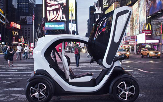 在歐洲,雷諾公司Twizy電動車:整車質量(467千克)、乘客人數(2人)、最高車速(45公里/小時)、續駛里程(100公里)