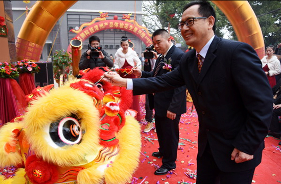 圖為猛獅科技相關(guān)領(lǐng)導(dǎo)為漳州體驗(yàn)店開業(yè)剪彩