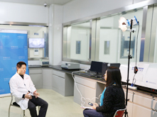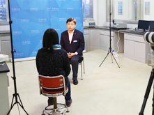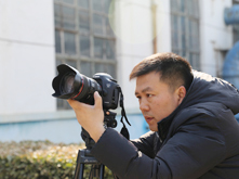 攝像師拍攝超威集團市場部總監楊享川接受記者采訪畫面