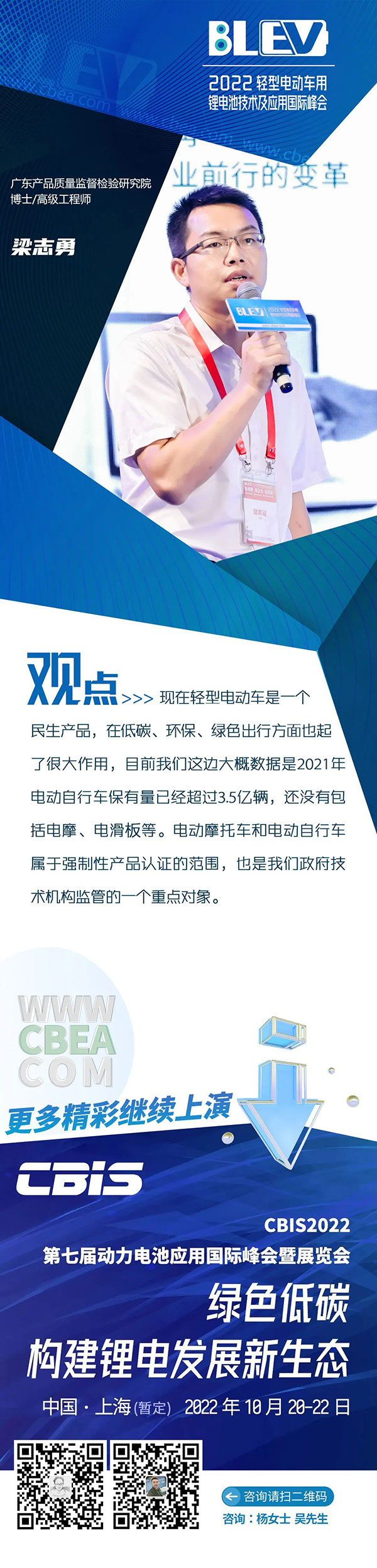 各位嘉賓、各位行業朋友,大家上午好!很榮幸參加此次峰會,我代表我們院來做一個主題分享《標準化、智能化怎樣賦能輕型電動車鋰電池產業高質量發展》,主要是結合我們廣東質檢院作為政府技術機構怎樣來從標準化引導子行業去轉型升級來做介紹。