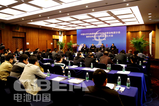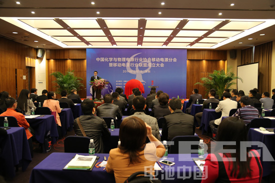 圖為中國化學與物理電源行業(yè)協(xié)會移動電源分會暨移動電源行業(yè)聯(lián)盟成立大會現(xiàn)場