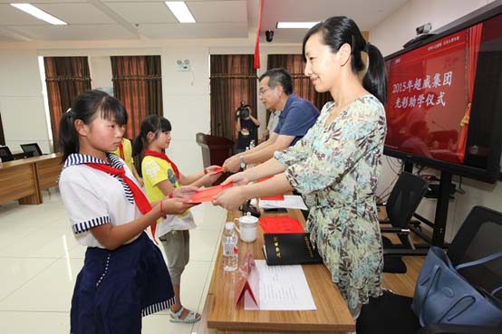 日前,“2015超威集團(tuán)光彩助學(xué)”捐助儀式在超威集團(tuán)總部舉行,來自浙江省長興縣的55名貧困少年得到超威集團(tuán)的資助。