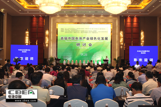 圖為首屆中國電池產(chǎn)業(yè)綠色化發(fā)展研討會開幕式現(xiàn)場