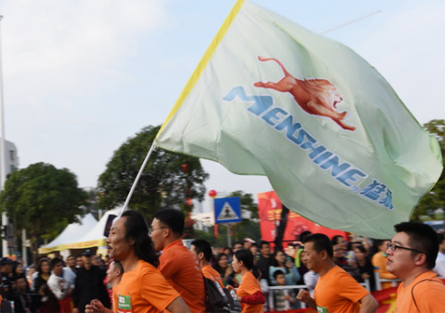 比賽期間,猛獅科技的參賽選手高舉印有猛獅LOGO的旗幟,在數千人的參賽隊伍中分外惹眼。憑著根植于內心的“頑強拼搏、勇往直前”的運動精神,猛獅科技參賽選手在馬拉松賽道中畫出一道靚麗的風景線,為本屆賽事增添了絢麗的風采。