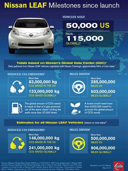 整體而言,日產(chǎn)聆風(fēng)在美國的累計(jì)銷量已經(jīng)達(dá)到了50000臺,上周,達(dá)拉斯居民Todd和Lisa Bolt成為了美國第五萬名聆風(fēng)車主。全球市場銷售方面,日產(chǎn)汽車公司稱,自聆風(fēng)上市以來,已經(jīng)賣出了近115000臺,成為世界最暢銷電動汽車。