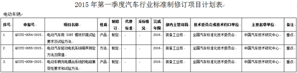 1月19日,工信部公開(kāi)征集對(duì)《電動(dòng)汽車用IGBT模塊環(huán)境試驗(yàn)要求及試驗(yàn)方法》等233項(xiàng)行業(yè)標(biāo)準(zhǔn)、10項(xiàng)國(guó)家標(biāo)準(zhǔn)計(jì)劃項(xiàng)目的意見(jiàn)。其中電動(dòng)汽車行業(yè)標(biāo)準(zhǔn)計(jì)劃項(xiàng)目共有三項(xiàng),分別為《電動(dòng)汽車用IGBT模塊環(huán)境試驗(yàn)要求及試驗(yàn)方法》、《電動(dòng)汽車驅(qū)動(dòng)電機(jī)系統(tǒng)噪聲測(cè)定方法及限值》、《電動(dòng)車輛充電耦合系統(tǒng)的電磁兼容性要求和試驗(yàn)方法》。