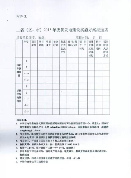 [摘要]日前,國家能源局正式下發國能新能〔2015〕73號文件,發布《2015年光伏發電建設實施方案》。