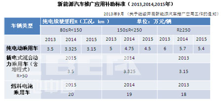 目前執(zhí)行的新能源汽車(chē)推廣應(yīng)用補(bǔ)助標(biāo)準(zhǔn)是參考《關(guān)于繼續(xù)開(kāi)展新能源汽車(chē)推廣應(yīng)用工作的通知》制定的,并且實(shí)現(xiàn)退坡機(jī)制,即2014年在2013年標(biāo)準(zhǔn)基礎(chǔ)上下降5%,2015年在2013年標(biāo)準(zhǔn)基礎(chǔ)上下降10%;2015年底補(bǔ)貼政策到期后,中央財(cái)政將繼續(xù)實(shí)施補(bǔ)貼政策。