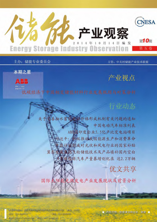 《儲能產(chǎn)業(yè)觀察》是由儲能專業(yè)委員會主辦、中關(guān)村儲能產(chǎn)業(yè)技術(shù)聯(lián)盟主管的儲能普及電子刊物?!秲δ墚a(chǎn)業(yè)觀察》第五卷第10期現(xiàn)已發(fā)布,內(nèi)容摘要如下: