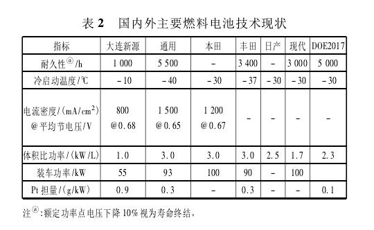 目前,國內(nèi)外燃料電池的技術(shù)現(xiàn)狀見表2。