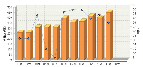 2014年1-11月,全國太陽能電池行業(yè)累計(jì)完成產(chǎn)量同比增長27.71%。其中:11月份完成產(chǎn)量同比增長25.04%。