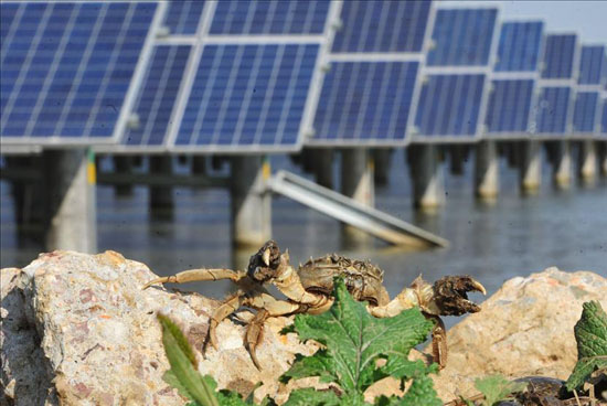 在常熟沙家浜現代漁業產業園,一排排太陽能電池板架設在魚塘水面,被稱為“漁光互補”的新模式讓光伏發電在寸土寸金的蘇南順利落地。整座電站由4萬多塊多晶硅太陽能電池板構成,裝機容量9.8兆瓦,由常熟本土光伏企業中利騰暉投資1.2億元建設。“先在魚塘上建水泥支架,然后安裝太陽能電池板。”常熟供電公司沙家浜供電所所長張志軍介紹,電站年均發電量1040萬千瓦時,上網價格為1.25元/千瓦時,全年經濟效益1300多萬元。電池組件的壽命一般在20年左右,該項目9-10年即可收回投資,還能享受10年左右的收益。