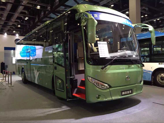 近日,在2015北京國際道路運(yùn)輸展上,剛剛下線的南京金龍?zhí)柲茈妱涌蛙囐嵶懔搜矍颍@是我國首款使用太陽能的大巴車。
