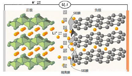 SEI膜的形成過程會消耗電池中的鋰離子,并且SEI膜并不是穩(wěn)定不變的,會在循環(huán)過程中不斷的破裂,露出來新的碳表面再與電解質(zhì)反應形成新的SEI膜,這樣會不斷造成鋰離子和電解質(zhì)的持續(xù)損耗,導致電池的容量下降。SEI膜有一定的厚度,雖然鋰離子可以穿透,但是SEI膜會造成負極表面部分擴散孔道的堵塞,不利于鋰離子在負極材料的擴散,這也會造成電池容量的下降。