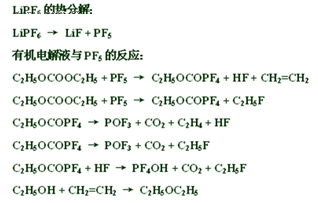 由于電解質(zhì)在負極的放熱副反應,電池內(nèi)部溫度不斷升高,進而導致電解質(zhì)內(nèi)的LiPF6和溶劑進一步發(fā)生熱分解。