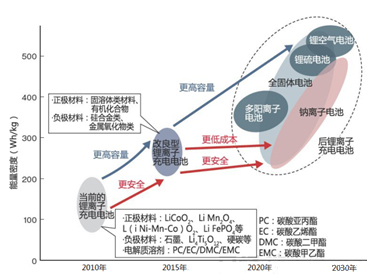 自SONY在90年代將鋰離子電池商業(yè)化以來,經(jīng)過20多年的發(fā)展,現(xiàn)有的電化學體系已經(jīng)逐步接近了瓶頸,未來將逐步進入“后鋰電池”時代。市場的強勁需求,必將推動和催生新的材料、新的化學體系、新的工藝在電池領域的應用,從而實現(xiàn)大的突破。