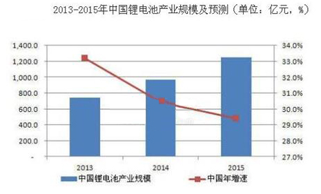 2014年1-12月,我國電池制造業(yè)主要產品中,鋰離子電池累計完成產量52.9億自然只,產量與上年持平;其中12月份當月完成產量4.8億自然只,同比下降12.3%。全球新能源汽車產業(yè)將在技術不斷成熟、政府扶持政策不斷落地的大背景下呈現出快速產業(yè)化的趨勢,另外,電動工具、電動自行車、新能源等產業(yè)也將在低碳經濟的背景下保持快速發(fā)展的勢頭。就中國市場而言,得益于動力鋰電池的快速發(fā)展,2014年鋰電池整體市場規(guī)模達到952.16億元,同比增長30.31%,到2015年整個中國鋰電池的市場規(guī)模將突破1000億元,達到1251.5億元。