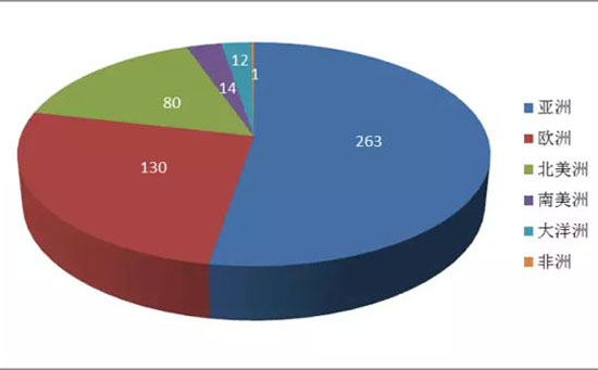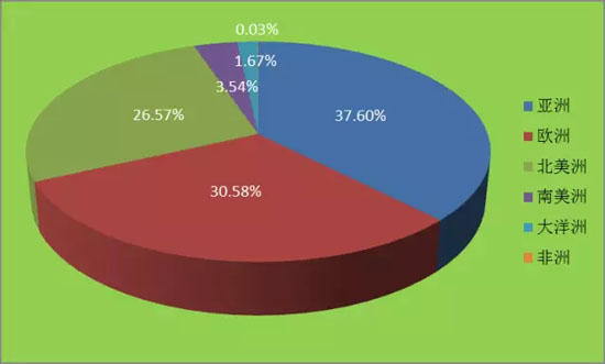 圖6 2015全球新能源企業500強各大洲入選企業數