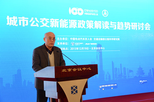 2015年12月19日,由中國電動汽車百人會與交通運輸部公路科學研究院聯合舉辦的“城市公交新能源政策解讀與趨勢研討會”在北京召開。