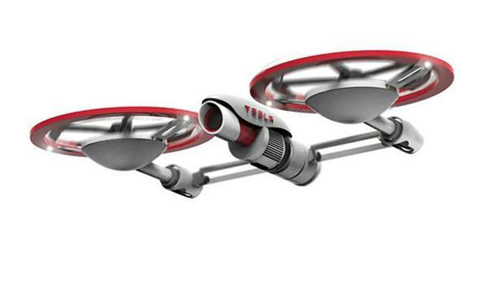 2015年9月,特斯拉Tesla作為電動汽車領(lǐng)域的佼佼者,公布了一款專門針對航拍應(yīng)用的無人機(jī)原型。特斯拉公司在充電電池方面顯然更為老道,據(jù)悉,該款無人機(jī)搭載了一塊10000mAh電池,單次充電可持續(xù)飛行60分鐘,充電時間為20分鐘左右。