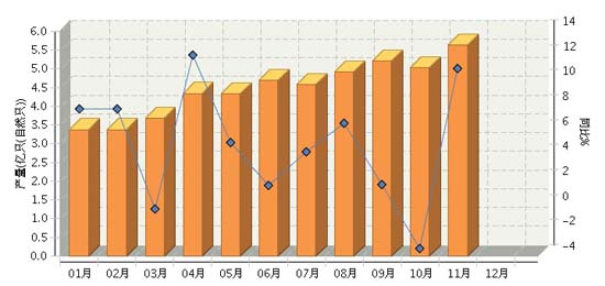 2015年1~11月,全國鋰離子電池行業(yè)累計完成產(chǎn)量同比增長-0.57%。其中:11月份完成產(chǎn)量同比增長-3.4%。2015年全國鋰離子電池行業(yè)月度產(chǎn)量及同比如上圖所示。