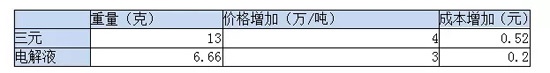 電芯的成本分析相對復雜,因為涉及到不同的正極材料,也涉及到不同的容量產品,各材料用量都會不同,本人僅以市場最主流的2000mAh 18650電芯來分析。目前2000的產品多以三元為正極,部分小廠劣質產品摻錳略過不提。以中端產品來看,2015年中價格約4.5元/顆,截止到2016年1月,其成本方面有所增加的主要有2個,一是三元材料,二是電解液。每顆電芯三元材料大概用到13克,電解液大概6.6克,以三元漲價4萬,電解液漲價3萬算,成本總共增加了0.72元,整體成本的增長還是非常明顯的。