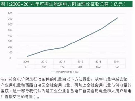 中國支持以風電和太陽能發電為代表的可再生能源快速發展的主要補貼資金來自可再生能源發展基金,包括國家財政年度安排的專項資金和依法征收的可再生能源電價附加(之后簡稱“電價附加”)。