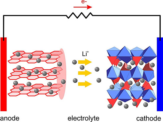 剩下的同學(xué)們,是不是覺得這圖很熟悉?其實(shí)還是鋰電池的示意圖,只是這回陰極陽(yáng)極的表面結(jié)構(gòu)都顯示出來(lái)了。大家有沒有覺得它們都很整齊規(guī)矩啊?
