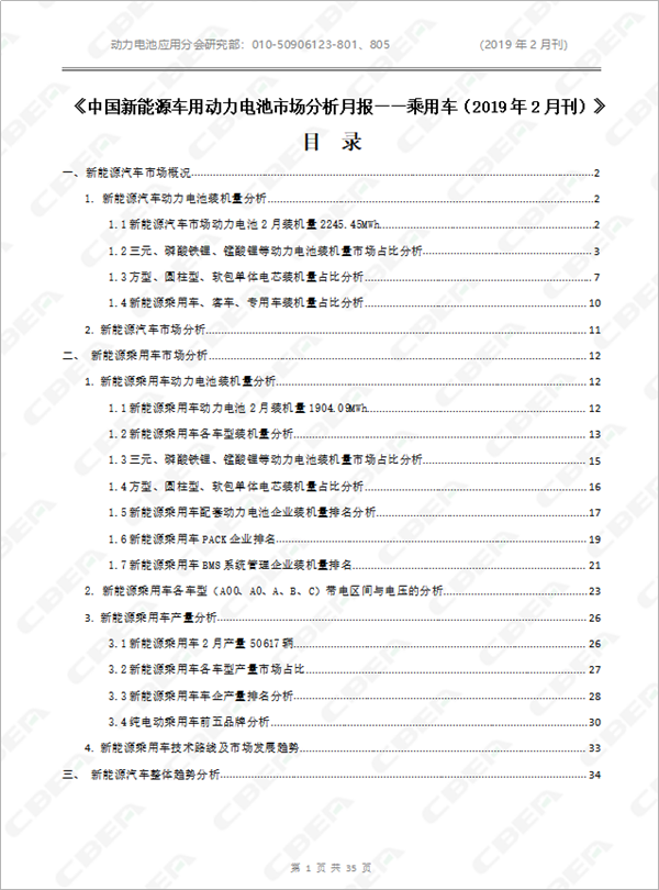 《2019中國(guó)新能源車(chē)用動(dòng)力電池市場(chǎng)分析月報(bào)——乘用車(chē)(2月刊)》目錄