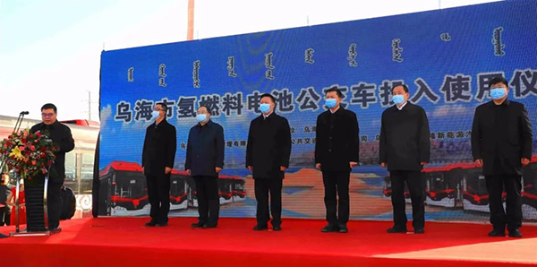 2021年2月初,內(nèi)蒙古自治區(qū)烏海市氫燃料電池公交車投入使用儀式舉行。據(jù)了解,此次烏海投放的20輛氫燃料電池公交車,均來自廣東珠海的銀隆新能源股份有限公司。銀隆新能源氫燃料電池客車在西北的烏海“氫”裝上陣,也標(biāo)志著氫燃料客車應(yīng)用推廣再次駛?cè)胄碌睦锍瘫?br/>
